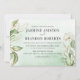 Invitations de mariage branchées à l'eucalyptus avec un arrière - plan chic de lavage à l'aquarelle verte, élégant feuillage botanique vert luxuriant, accents d'or, et un modèle de texte mariage moderne facile à personnaliser.