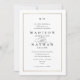 Cette Faire-part de mariage classique Elegant Gold est simple et polyvalente. Il présente un design chic blanc et noir avec un monogramme, des détails de script, un cadre or simple et un texte formel modifiable. Cliquez sur le bouton Modifier pour customiser cette conception.