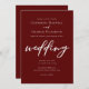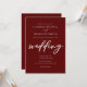 Cette élégante faire-part de mariage bordeaux présente un script blanc simple pour un marié et un marié qui se marie dans un lieu de soirée formel. Embrassez le romantisme avec cette couleur riche et audacieuse. Invitations minimalistes et romantiques de typographie pour un couple moderne.