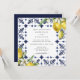 Un élégant faire-part de mariage moderne est doté d'une bordure en carrelage bleu marine aux accents d'aquarelle au citron. Personnalisez tous les détails importants tels que les noms des mariés et des mariés, la date du mariage, l'heure et l'emplacement.
