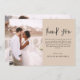 Mini Mariage Terracotta Merci Cartes qui ont une photo à l'avant et à l'arrière. Les cartes de remerciement contiennent une typographie de script moderne, lettrée à la main, qui sont élégantes, simples et modernes à utiliser après la célébration du mariage.