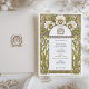 Cette invitation de mariage sophistiquée est inspirée du style Art nouveau intemporel, avec des détails floraux complexes, des motifs en arc et des motifs botaniques élégants. Décoré de tons pastel doux, de teintes dorées et d'illustrations artistiques, ce design évoque une esthétique romantique et vintage. Parfait pour les mariages au thème raffiné, inspiré de la nature ou vintage. Un blason assorti complète le look au dos, assurant une présentation cohérente et luxueuse. Un choix époustouflant pour les couples qui recherchent une beauté artistique classique pour leur grand jour.