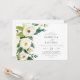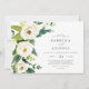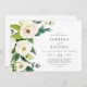 Cette élégante faire-part de mariage horizontale fleurie blanche conviendra parfaitement à une mariage classique. Le design vintage moderne présente de magnifiques rose de couleur d'ivoire et crème et des fleurs de pivoine avec des feuilles vert foncé, de la verdure et des botaniques.
