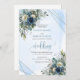 Invitation Elégant Mariage floral bleu bleu blanc argent