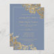Elégante simple moderne fausse feuille d'or imprimé rose floral et bleu poussiéreux, invitations de mariage. Design très classique et sophistiqué pour le couple marié. Personnalisez avec votre propre message et monogramme sur le dos. Toute la conception d'impression photo. ****Cliquez sur le bouton (Customisez-le!) pour obtenir plus de taille, de couleur et d'options de placement.****