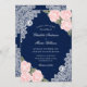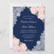 Invitation Élégant Mariage floral bleu marine et bleu brun