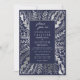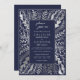 Invitation Elégant Mariage floral bleu marine Silver