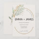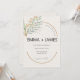 Invitez vos invités avec style avec ce faire-part de mariage floral vert et or, mettant en vedette des illustrations botaniques élégantes et une typographie raffinée. Accentué de feuilles vertes luxuriantes et de tons dorés scintillants, ce design allie charme naturel et sophistication intemporelle — parfait pour les mariages en jardin, vignoble ou romantiques modernes. Entièrement personnalisable pour s'adapter aux détails uniques de votre événement.