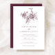 Invitation Elégant mariage floral Bourgogne Merlot Vintage