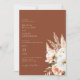 Faire-part de mariage couleur terre cuite orangée avec des accents boho chic floral roses de pivoine et gazon de pampas. Simple à personnaliser avec les détails de votre mariage pour vos invités dans une élégante typographie minimaliste.