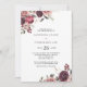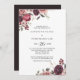 Cet élégant faire-part de mariage fleuri d'été bordeaux est parfait pour un mariage moderne. Le design présente de beaux roses bordeaux bordeaux bordeaux dessinés à la main, soigneusement arrangés en cadres et bouquets attrayants.