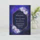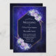 Un élégant faire-part de mariage à fleurs géométriques bleu marine.