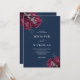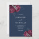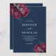 Invitation Élégant Mariage Floral Navy Blue Burgundy Peonies