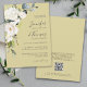 Invitation Élégant Mariage floral or blanc avec code QR