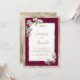 Ce magnifique design de faire-part de mariage présente une belle aquarelle blanche, bordeaux et or élégante invitation à mariage tropical orchidée qui sont parfaits pour toute cérémonie élégante et sophistiquée. Cet élégant et élégant floral tropical est parfait pour le couple de luxe et élégant. Customisez cette conception avec votre message et des informations personnalisées. Tous les dessins sont imprimés.