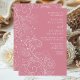 Cette élégante invitation au mariage présente un délicat design ornemental floral avec fleurs, oiseaux et feuilles sur un arrière - plan rose poussiéreux. Le texte combine écriture manuscrite et polices serif pour un look élégant et moderne. Parfait pour un mariage de automne d'hiver ou d'automne.