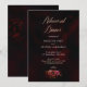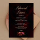 Invitez vos proches et amis à votre célébration de pré-mariage avec cette élégante carte de dîner de répétition florale rouge noir. Le fond noir profond associé à une œuvre d'art florale rouge audacieuse crée un design botanique romantique et dramatique. Cette invitation élégante complète parfaitement un thème de mariage romantique sombre tout en donnant le ton pour votre rassemblement de dîner de répétition.