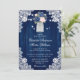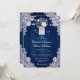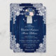 Faire-part de mariage rustique bleu marine et floral roux avec bouquet de roses et fleurs d'haleine de bébé à l'intérieur d'un bocal en maçon contre un arrière - plan en bois de grange orné de dentelle fleurie blanche et de lampes à cordes. Un design de carte parfait pour inviter vos invités à votre mariage bleu marine et rustique. Personnalisez facilement cette invitation de mariage avec vos détails mariages en ligne. Conception entièrement personnalisable. Éléments correspondants disponibles.