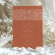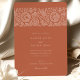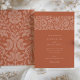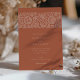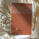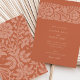 Ce faire-part de mariage magnifiquement conçu dispose d'un arrière - plan en terre cuite chaleureux aux motifs floraux broussailleux complexes, créant une esthétique accueillante et sophistiquée. L'avant de l'invitation présente d'élégantes ornements floraux sur le dessus, avec une typographie raffinée qui détaille les informations mariages. Le dos poursuit le thème avec un mélange harmonieux de motifs floraux dans les tons assortis, avec des initiales personnalisées pour une touche sur mesure. Parfait pour les couples à la recherche d'un mélange de charme moderne et rustique, cette invitation à la palette de couleurs riche et le design détaillé en font un choix idéal pour les mariages d'automne ou d'extérieur.