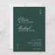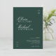 Faire-part de mariage vert émeraude avec typographie minimaliste chic.