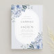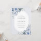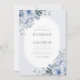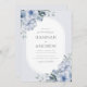Elégante faire-part de mariage florale bleu poussiéreux avec fleurs aquarelles et cadre ovale moderne. Un beau modèle pour un mariage à thème printemps ou été.