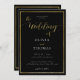 Un modèle faire-part de mariage très simple, moderne, élégant et classe, avec un arrière - plan noir, un cadre en or brossé à la main (pas de papier peint) et un script de calligraphie moderne. Un design chic et intemporel qui allie un design mariage traditionnel et formel à une calligraphie de script moderne et à une mise en page tendance.