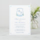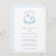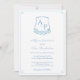 Ce design faire-part de mariage bleu et blanc élégant présente mes illustrations d'aquarelle d'origine (les hydrangées / feuilles et la forme de crête). La crête monographique est entourée d'une bordure "clé grecque" et au fond, d'un support motif "clé grecque". Vous pouvez modifier la couleur de contraste de la touche grecque à l'avant et à l'arrière (représentée ici en bleu clair) en n'importe quelle couleur de votre choix en entrant dans l'outil de conception (sous la zone de personnalisation du texte, cliquez pour "customiser plus loin"), puis en modifiant la couleur arrière - plan de chaque calque.