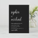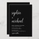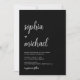 Célébrez votre union avec une faire-part de mariage minimaliste qui met magnifiquement en valeur vos noms. L'arrière - plan noir sophistiqué fournit une toile étonnante pour l'élégant écriture manuscrite blanche, avec une police propre et simple pour tous les détails importants. Ce design chic est parfait pour une célébration mariage moderne et intime.