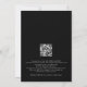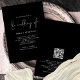 Élégant script blanc QR Code Black Wedding invite. Avec un script stylé pour le Mariage de et le reste du texte, vous pouvez facilement personnaliser. Avec un code QR à l'arrière pour la commodité de vos invités à scanner et répondre en ligne et voir plus de détails sur votre site Web mariage, ce qui en fait une option pratique tout en un. Vous pouvez modifier le texte et les couleurs arrière - plans de chaque côté à n'importe lequel de vos choix si vous le souhaitez.
