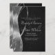 Élégant invitation de mariage personnalisable à motif floral damassé noir et gris argent.