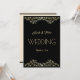 Un élégant Faire-part de mariage noir et or conçu avec des garnitures et des accents de couleur or. Le texte avant comprend : le MARIAGE, les prénoms de la mariée et de la chambre et la date du Mariage. Le texte inverse comprend : Les noms complets de la mariée et de la chambre, la date du Mariage, l'heure, l'emplacement et la note de réception, sur un arrière - plan de couleur lin souple, avec bordure noire. Pour personnaliser, insérez simplement votre texte dans notre modèle facile, en remplaçant l'exemple de texte. N'oubliez pas de consulter la collection Elegant Black and Gold Mariage pour les cartes et accessoires correspondants.