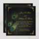Belle arrière - plan de parties scintillant noire et blanche avec élégantes invitations mariage vert émeraude et or paon plumes. Cet élégant faire-part de mariage paon est facilement customisé pour votre événement. Vous pouvez supprimer l'image arrière - plan du côté arrière si vous voulez choisir votre propre couleur arrière - plan, comme le noir.