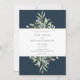 Doté d'un délicat feuille d'aquarelle sur un arrière - plan bleu marine. Cet élégant faire-part de mariage botanique peut être personnalisé avec vos détails spéciaux de jour de mariage. Vous pouvez ajouter une photo au contraire. Conçu par Thisisnotme©