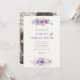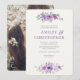Faire-part de mariage moderne de style classique avec bouquets aquarelle fleuris dans les tons violet et lavande. Photo complète de bord à bord à l'arrière. Idéal pour le printemps, l'été et le mariage de automne modernes, boho et rustiques. La typographie serif moderne. Composition classique. Entièrement personnalisable. Contactez-nous pour vous aider à personnaliser ou à customiser vos souhaits.