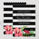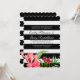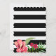 Élégant rayures noires et blanches et fleurs exotiques rouges roses. Modèle d'invitation de mariage personnalisable