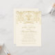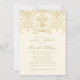 Une invitation de mariage de luxe avec un motif damassé à paillettes dorées couronnant un fond ivoire chaud. La tonalité blanche douce ajoute de la chaleur au design orné de volutes tandis que la calligraphie et la typographie sérif dorée maintiennent une élégance formelle et soignée. Convient également parfaitement pour un déjeuner de mariage. Chaque détail est entièrement personnalisable.