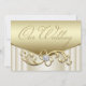 De belles invitations de mariage avec tourbillon de diamants en or et ivoire. Cette invitation de mariage élégante en or et ivoire est facilement personnalisable pour votre événement.