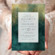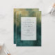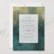 Un élégant design abstrait d'aquarelle dans les tons turquoise profond et or fournit l'arrière - plan pour le texte gris fusain sur un écran rectangulaire blanc. La conception de l'aquarelle est répétée au dos de la carte.