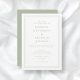 Élégant Faire-part de mariage Formal Sage Vert. Un élégant classique de noms complets à la sauge verte et blanche modèle de carte de faire-part de mariage pour le customiser avec vos propres détails mariages personnels. Un design simple mais élégant pour une célébration mariage classique par Maggie B Design Studio. La papeterie et les accessoires mariages correspondants peuvent être trouvés dans notre collection Elegant Formal Sage Green Mariage Suite ou visitez notre magasin à www.zazzle.com/store/maggiebdesign.