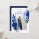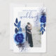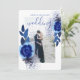 Invitation Elégant Marine Blue Flowers Cadre Photo Mariage