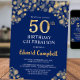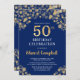 Invitation Elégant Marine Blue & Gold 50e anniversaire Invita