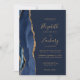 Invitation Elégant Marine Blue Gold Agate QR Code Mariage