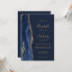 Le bord gauche de cette élégante faire-part de mariage moderne est orné d'une bordure en aquarelle bleu marine ornée d'une parties scintillant en faux or. Le texte personnalisable combine écriture manuscrite couleur or, cuivre et polices italiques sur un arrière - plan bleu marine. L'envers offre de l'espace pour les détails mariages sur un arrière - plan bleu marine solide, ainsi qu'un code QR que les invités peuvent scanner pour visiter votre site Web et RSVP, qui économise le coût d'impression et d'envoi de cartes RSVP séparées.