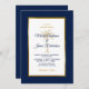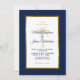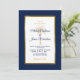 Invitation vos invités pour vous aider à célébrer votre journée spéciale avec cette élégante invitation avec script moderne, bleu marine et texte or y compris un palmier artistique et cadre en feuille d'or métallique sur le devant de la carte. Un arrière - plan bleu marine est à l'avant et à l'arrière.