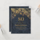 Elégante invitation à la fête du 80e anniversaire bleu marine avec des lampes à cordes dorées scintillantes et un bokeh pétillant. Contactez-nous pour obtenir de l'aide sur la personnalisation ou la mise en correspondance du produit