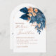 Pour un mariage qui allie élégance intemporelle et modernité, cette Elégante invitation à mariage bleu rouille orange jardin marine est le choix idéal. La riche palette de couleurs bleu marine, rouille chaude et terre cuite crée un contraste visuel époustouflant qui apporte le sens d'une célébration chic et inspirée du jardin. La forme voûtée unique ajoute un élément de sophistication, ce qui fait que vos invitations se démarquent et se sentent vraiment uniques. De plus, avec des options de personnalisation faciles, vous pouvez ajouter votre touche personnelle et vous assurer que chaque détail est juste, de vos noms à la date du mariage et au-delà. Commandez le vôtre et laissez cette invitation être le premier de nombreux beaux moments à venir.