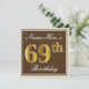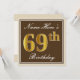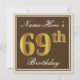 Invitation Élégant, Marron, Doré Faux 69e Anniversaire + Nom