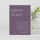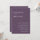 Mauve Purple Typographie Moderne QR Code Tout En Un Minimaliste Carte Faire-part de mariage. Célébrez votre journée spéciale avec cette belle et élégante carte de faire-part de mariage pour embellir votre occasion spéciale. Tous les textes sont pré-arrangés pour que vous personnalisiez facilement et rapidement avec vos propres détails. Si vous avez besoin d'une personnalisation ou d'une correspondance, envoyez un courriel à alldaybreakfastzazzle@gmail.com - nous aimerions vous aider.