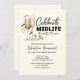Celebrate midlife in style with this clean and modern 50th birthday invitation! The design features the word “Celebrate” in an elegant script font, “midlife” boldly centered to embrace the milestone, and the phrase “It’s a party, not a crisis” in a playful script. A graphic of two champagne glasses clinking adds a festive touch to the front. On the back, the same graphic appears with the joyful quote “Cheers to 50 years.” All party details are set in a classic serif font for easy customization. Perfect for anyone who’s ready to toast to midlife with laughter and flair!