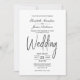 Une élégante faire-part de mariage blanche minimaliste au texte noir.